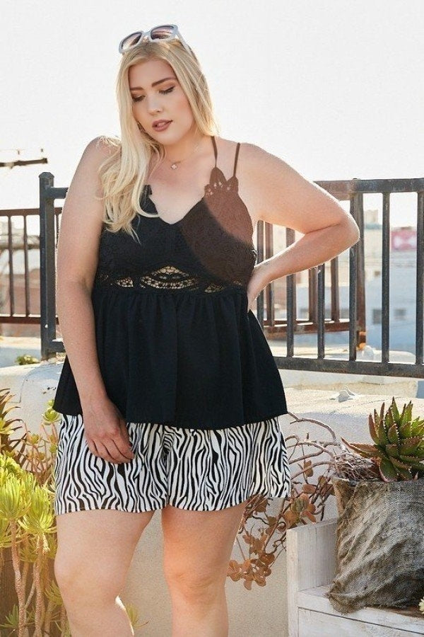 Double Strap Lace Trim Top - Black